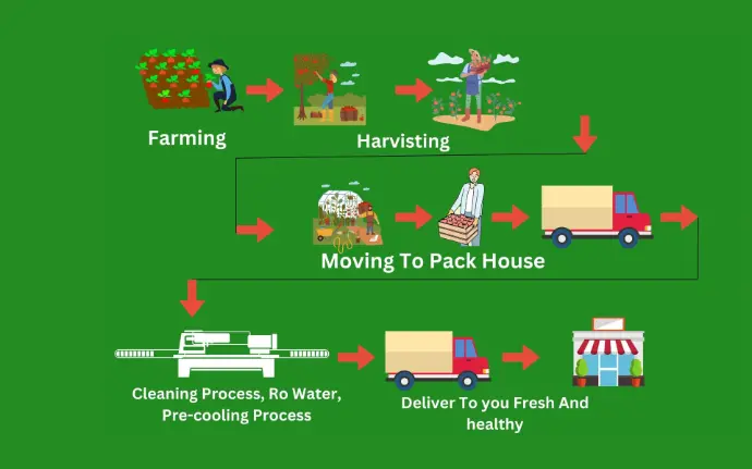 Secure Packaging & Shipment: The certified fresh produce is carefully packed in food-grade, sustainable, and ventilated packaging. It is then shipped under a meticulously managed cold chain, ensuring the ideal temperature is maintained throughout its journey to you.