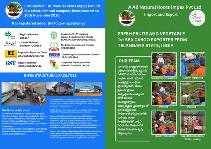 We are headquartered in Hyderabad, India, a major agricultural hub. We are exporters of premium fresh fruits and vegetables, specializing in sourcing, processing, and shipping high-quality produce to international markets across the globe.